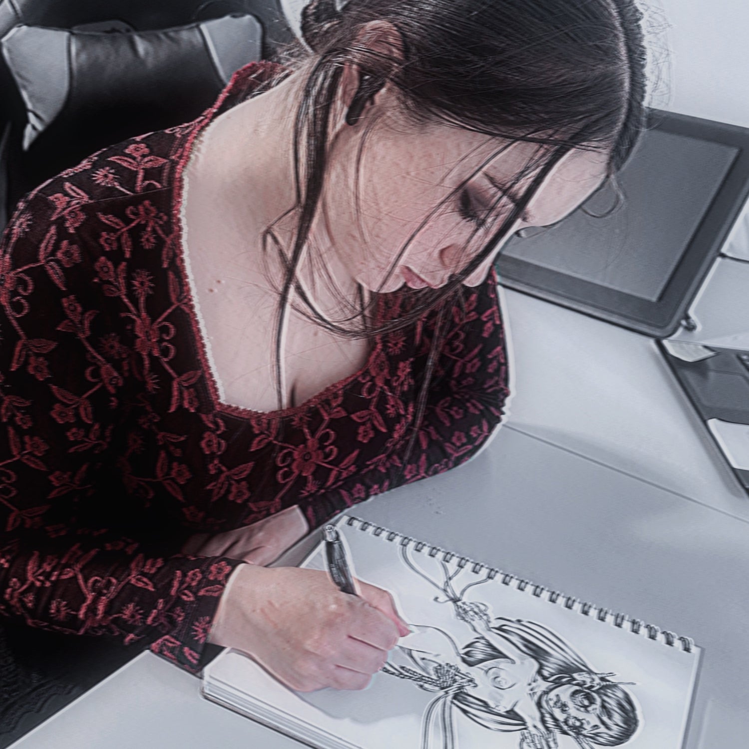 Rebecca, an illustrator from rural New South Whales Australia. Specialises in portraying doll-like beings that appear fragmented and initially unsettling. However, upon closer examination, her artwork reveals deeper emotional layers. These ethereal beings symbolize inner struggles and attempts to cope with distress, transcending time and place.
